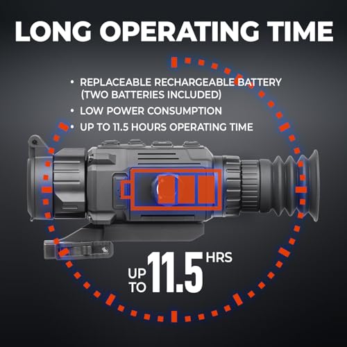 All-Night Stamina with Dual Power: Engineered for extended hunts, this thermal riflescope runs up to 11.5 hours on a single charge — and comes with two rechargeable so you’re always ready to go. It’s dependable power when you’re deep in the field with no backup plan.