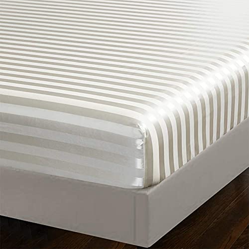 Specification: AiMay 6 Piece Satin Italian Style Bed Sheet Set Deep Pocket Striped 1800 Luxury Rich Silk 1 Flat Sheet 1 Fitted Sheet 4 Envelope Pillowcases Stain-Resistant Wrinkle Free (Queen,Off White)