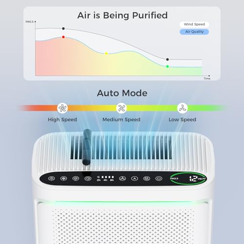 Make Purification Visible: Use the built-in air detection device, PM2.5 readings and light changes to see how well it’s working. It helps you “see” and “choose”, turning passivity into action. In AUTO mode, it automatically adjusts fan settings based on air quality, making your life even more convenient.