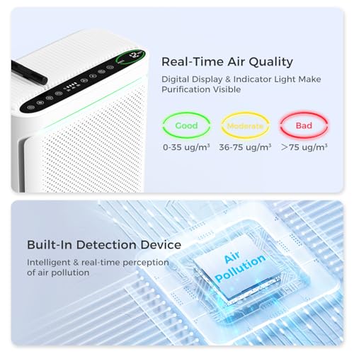 Air Purifiers For Home With Air Quality Display Cover Area Up to 2152 Sq.Ft Equipped with True H13 HEPA Washable Filter Air Cleaner with Fragrance Sponge for Bedroom Dorm Room, DH-JHD08(White)