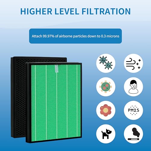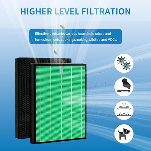 HIGH EFFICIENCY – Pre-filter traps large particles in the air like hair, pet fur, pet dander and more. The premium activated carbon filters can efficiently absorb terrible odors including Pet odors, Smoke odors, Cooking odors, Harmful VOC’s