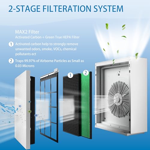 3 STAGE FILTRATION SYSTEM – Airmega 230 & 240 max2 replacement filters are made of 3-in-1 filtration systems including Pre-filter, H13 Grade Max 2 Green True HEPA Filter, and Activated Carbon Filter