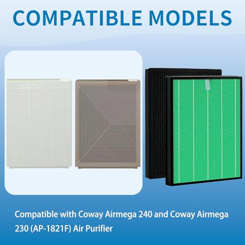 Specification: Airmega 230/240 Filter Replacement, Compatible with Coway Airmega 230 & Coway Airmega 240 Air Purifier(AP-1821F) Part # 3111151, Max 2 Green True HEPA and Active Carbon Filter, 2 Pack