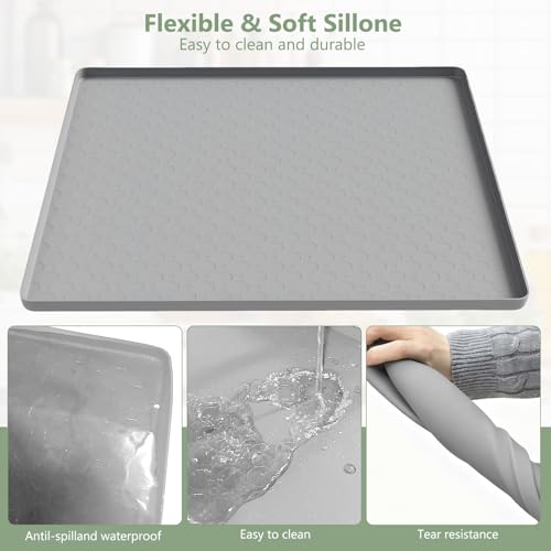 AKEfit Heat Resistant Silicone Mat, Non-Slip Waterproof Air Fryer Mat for Kitchen Countertops, Oven, AC,Stove Top & Dining Table Protection (Grey)