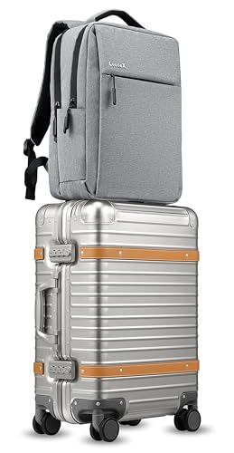 External Dimensions(including wheels and handles): 21.7x15x9.4 IN, Internal Dimensions: 19.3×13.3×9.3 IN, Weight: 9.7 LB, Capacity: 40.3L. Portable Backpack: Our aluminum carry on luggage includes a portable backpack, expertly designed to house your daily essentials. The integrated strap ensures secure attachment to your silver suitcase, making traveling effortless and efficient.