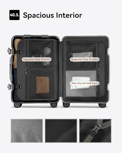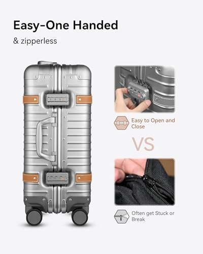 Effortless Maneuverability: Navigating through busy airports is made easy with this metal carry on luggage with wheels. Equipped with 8 spinner wheels, it offers excellent directional control, and silent operation, even in the rush of travel.