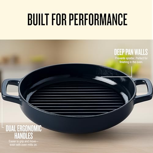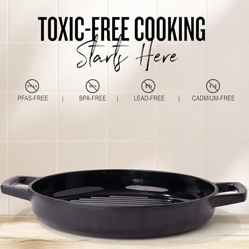 Specification: Alva Nori Enameled Cast Iron Grill Pan, 11″ – Made With No PFAS/PTFE/PFOA, Oven & Induction Safe – 3-Layer Enamel, No Seasoning Needed – Durable, Easy-Clean Bakeware for Healthy Cooking, Black