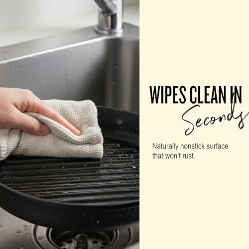Value in Every Detail: Alva Nori Cast Iron Cookware ensures quality and design with its classic stylish black cast iron design. No need to season with 3 layers of thick nonstick enamel coating inside and out means you can use these right away. Ideal for outdoor grilling with raised ridges that give food those classic grill marks and allow fats to drain away, enhancing both flavor and texture. A rich, dark color helps these masterpieces retain their timeless look for years to come.