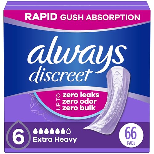 Specification: Always Discreet Adult Incontinence Pads for Women, Extra Heavy Absorbency, Regular Length, Postpartum Pads, 66 Count (2 Packs of 33)
