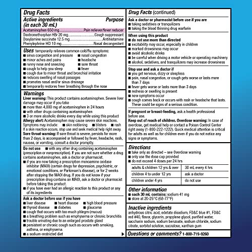 EFFECTIVE: Each dose contains a pain reliever, fever reducer, cough suppressant, antihistamine and nasal decongestant