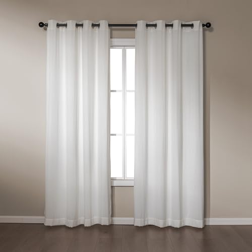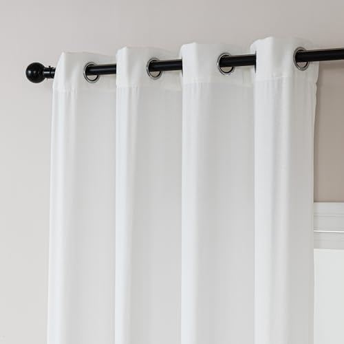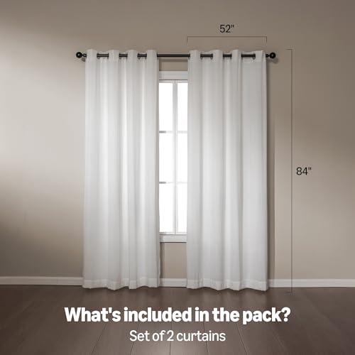 Amazon Basics Chenille Room Darkening Curtains, Light Filtering Window Drapes for Bedroom and Living Room, 2-Panel Set with Grommets, 52″ W × 84″ L, White Classic