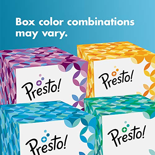 Amazon Brand – Presto! Ultra 3-Ply Facial Tissue 66CT 1 Pack, Ultra-soft and strong, thick facial tissues. Durable strength premium tissues in fun, colorful retro cube boxes (66 per box)
