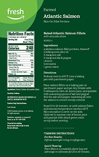 Specification: Amazon Fresh Brand, Farmed Atlantic Salmon, 1 Lb (Frozen)