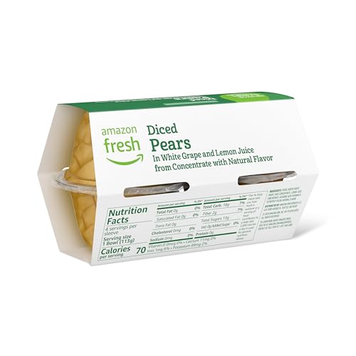 Specification: Amazon Fresh, Diced Pears in White Grape and Lemon Juice, 4 Oz Bowls (Pack of 4) (Previously Happy Belly, Packaging May Vary)