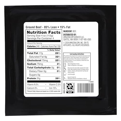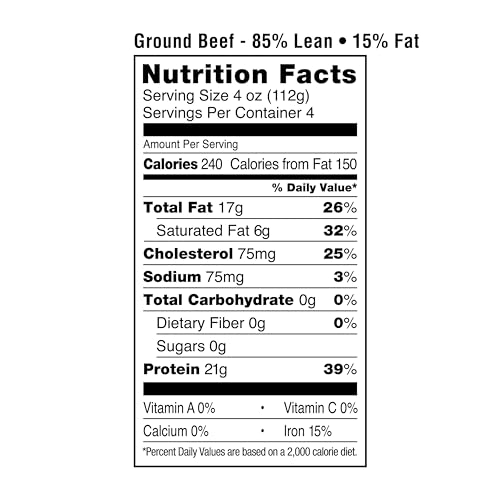 Specification: Amazon Grocery, Ground Beef, 85% Lean/15% Fat, 1 lb (Previously Fresh Brand, Packaging May Vary)
