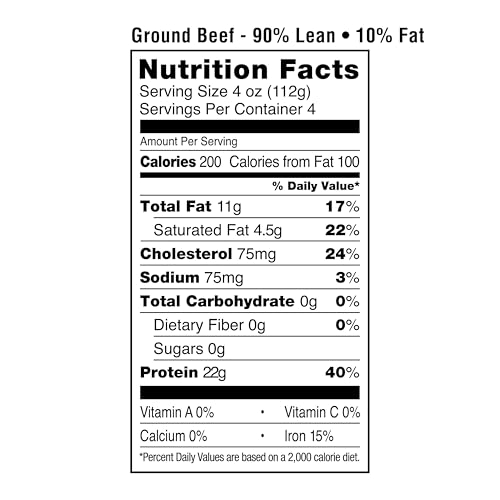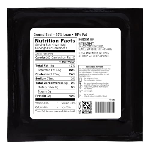 Specification: Amazon Grocery, Ground Beef, 90% Lean/10% Fat, 1 lb (Previously Fresh Brand, Packaging May Vary)