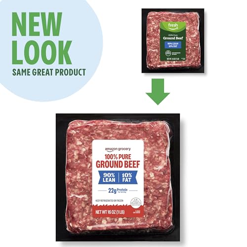 Amazon Grocery, Ground Beef, 90% Lean/10% Fat, 1 lb (Previously Fresh Brand, Packaging May Vary)