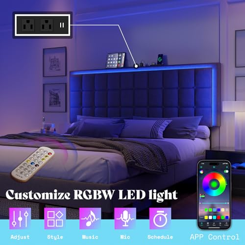 Charging Station & Easy to Assemble: Our queen-size bed platform is expertly engineered to be simple and easy to assemble, equipped with a convenient charging station with 2 AC outlets, USB & Type-C ports, and a 5.9ft cord.
