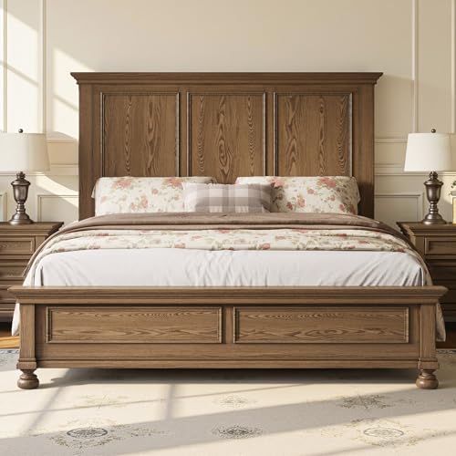 【Classic & Vintage Style】Crafted with natural wood grain and a full-panel headboard, this farmhouse bed highlights exquisite craftsmanship and elegant bun-shaped feet, bringing rustic charm and timeless style to your bedroom