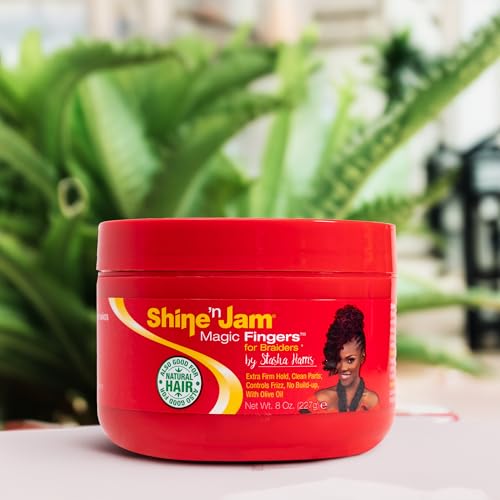AmPro Shine-n-Jam Magic Fingers Gel for Braids – Provides Firm Hold with Non-Greasy Shine – Strengthens Hair with Silk Proteins – Works on Any Hair Texture to Create Multiple Styles – 8 oz