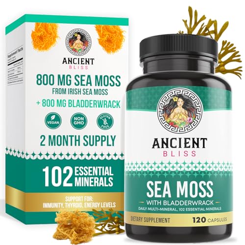 Specification: Ancient Bliss Organic Irish Sea Moss Pills – Dr Sebi Wildcrafted Seamoss Capsules | Thyroid, Healthy Skin & Gut Support | 120 Capsules