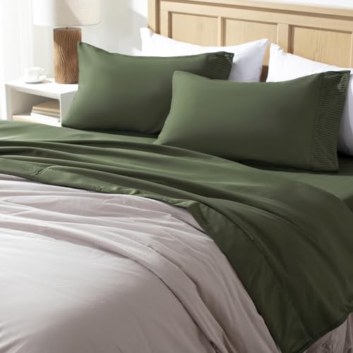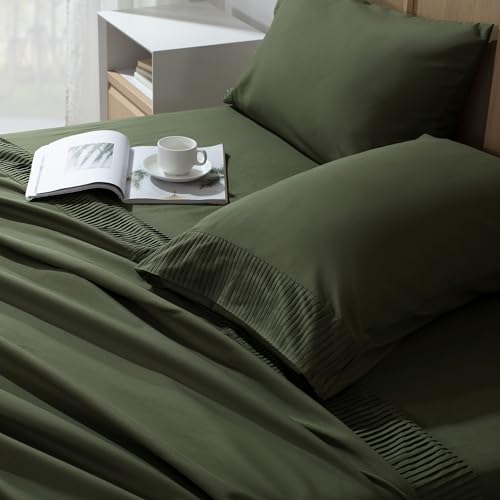 Andency Queen Sheet Set 4 Pieces, Dark Olive Green Super Soft Sheets for Queen Size Bed, Microfiber Queen Sheet, Deep Pocket Up to 16″, Hotel Luxury Breathable & Cooling Bed Sheet Set