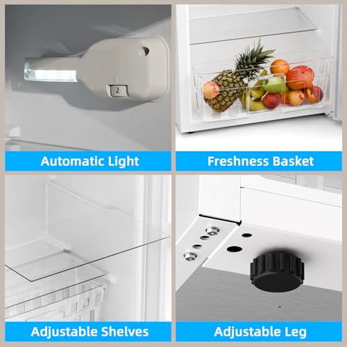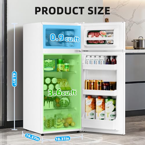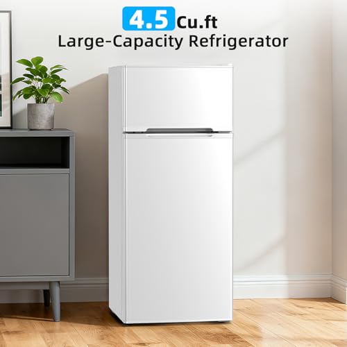 Specification: Antarctic Star Compact Refrigerator,4.5 Cu.Ft. Mini Separate Freezer Double 2-Door Adjustable Removable Shelves for Apartment/Dorm/Office,WHITE