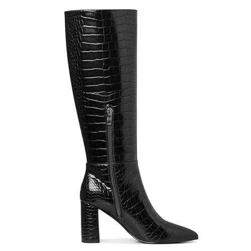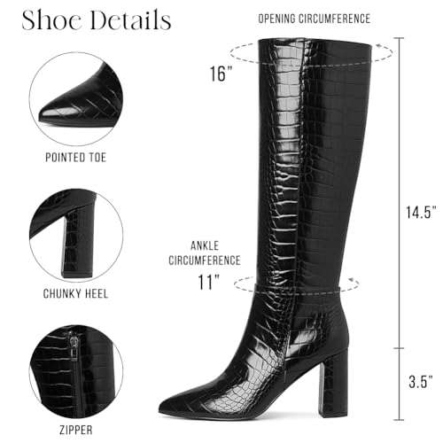 Specification: AOSPHIRAYLIAN Knee High Boots Chunky Heel Wide Calf Knee High Boots for Women Pointed Toe with Zipper Block Heel Fashion Dress Womens Shoes
