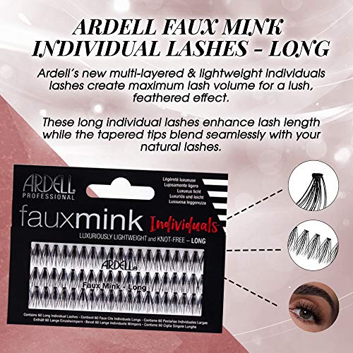 Ardell Faux Mink Individual Lashes – Long Black, Lightweight, Natural-Looking DIY Lash Clusters, Reusable Fake Eyelashes, 4 Pack