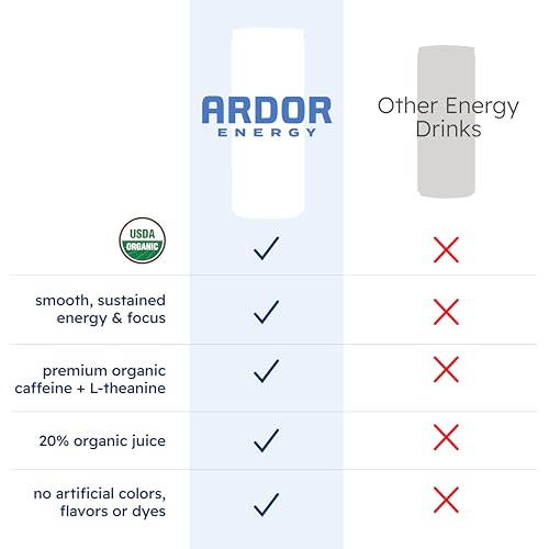 Specification: ARDOR ENERGY Natural Sparkling Energy Drink with 100mg Natural Caffeine & 200mg L-Theanine from Organic Green Tea for Smooth Energy & Focus | Healthy Energy Drink | Made with Real Fruit Juice | No Artificial Sweeteners, Just 50 calories, Vegan, Gluten-Free | Variety Sampler (Pack of 6, 12oz cans)