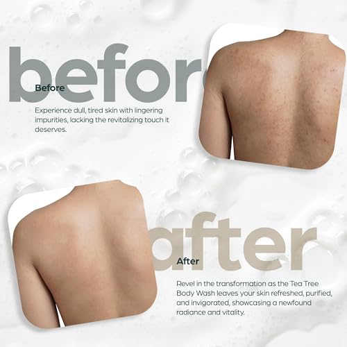 Banish Acne & Body Acne: Our specialized body wash harnesses the power of tea tree oil, a natural antibacterial agent, to target stubborn acne and body acne. Gentle yet effective, it penetrates deep into pores to cleanse away impurities, prevent future breakouts. Experience visibly clearer, smoother skin all over with our refreshing tea tree oil body wash.