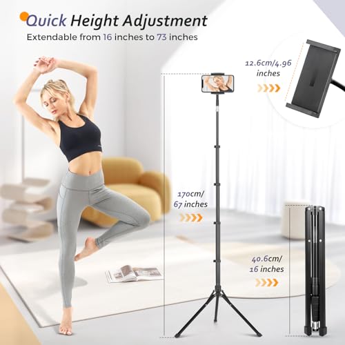 Aureday iPad Stand Floor, 67” Height Adjustable iPad Tripod Stand, Tablet Stand with Extendable Holder for iPad mini, iPad Air, iPad Pro, Kindle, Switch, Smartphones, and All 4.7″ to 12.9″ Devices