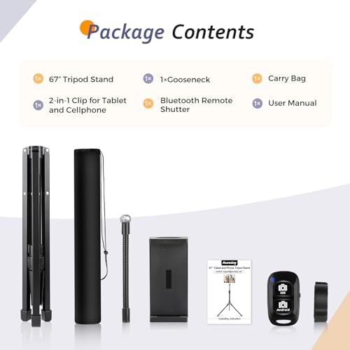Specification: Aureday iPad Stand Floor, 67” Height Adjustable iPad Tripod Stand, Tablet Stand with Extendable Holder for iPad mini, iPad Air, iPad Pro, Kindle, Switch, Smartphones, and All 4.7″ to 12.9″ Devices