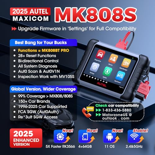 【FOR UPDATES AND COMPATIBILITY ISSUES】♻️To ensure optimal performance, always keep your MK808S updated via Settings > Firmware Upgrade. Your device includes one year of fr.ee software updates. After that, all offline features will continue to function without updates. 🚗With support for over 150 car brands (specific capabilities vary by model), you can verify compatibility by checking Autel Web.> Support> Vehicle Coverage or reaching to our support team at 1-833-436-5880. We’re here to help!