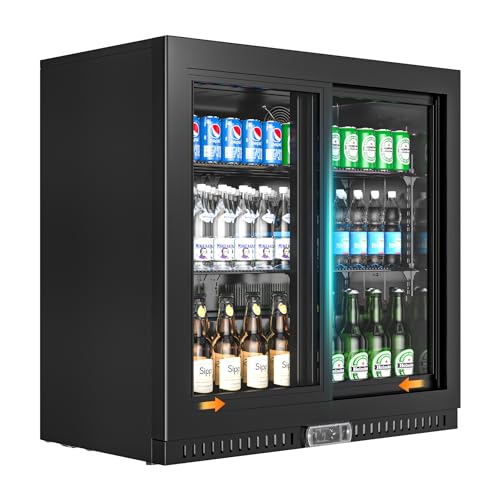 Specification: Back Bar Cooler with 2 Glass Sliding Door, 6.8 Cu.ft Commercial Under Counter Back Bar Refrigerator with LED Lighting, Counter Height Beverage Cooler for Beer, Wine, Soda Drinks