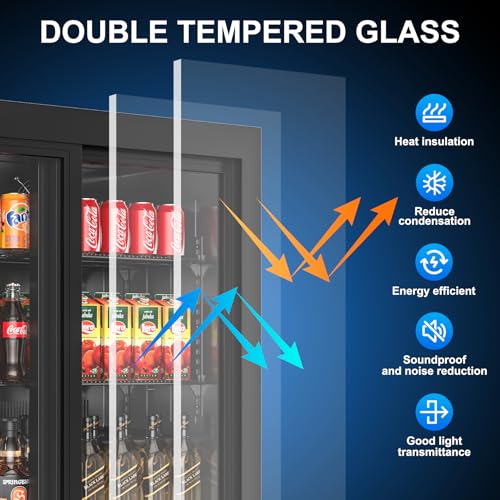 Effective Insulation and Defogging: The sliding glass door back bar cooler uses double-layer tempered glass with a coating for heat insulation and defogging, effectively blocking UV rays and heat. The defogging technology keeps the glass clear and transparent at all times, preventing internal condensation inside the glass door, allowing customers to clearly see the items inside at any time