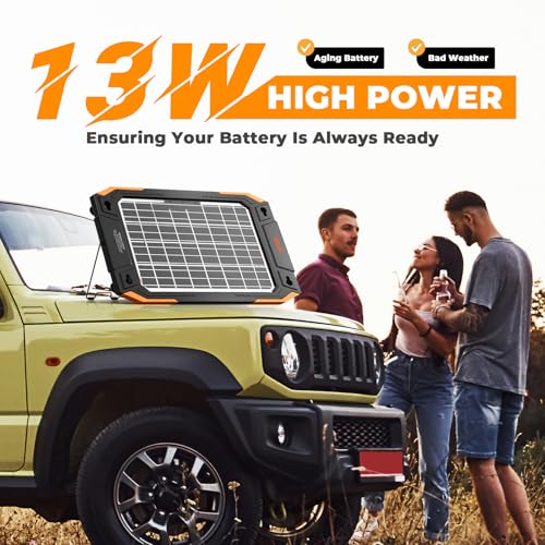 BALDR Upgraded 13W Solar Battery Trickle Charger Maintainer 12V Portable Waterproof Solar Panel Trickle Charging Kit for Car Automotive Boat Marine RV