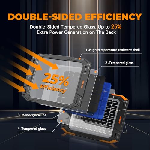 Dual-Sided Solar Absorption: Double the Efficiency:We’ve redefined solar charging efficiency with dual-sided tempered glass design! This innovative panel captures not only direct sunlight from above but also reflected light from the ground or surrounding surfaces, increasing energy conversion efficiency by 25%. Even in shaded spots like garages, boat docks, or under tree canopies, it works seamlessly—adding 2 extra hours of charging time daily (from dawn till dusk) to rejuvenate aging batteries in less time.