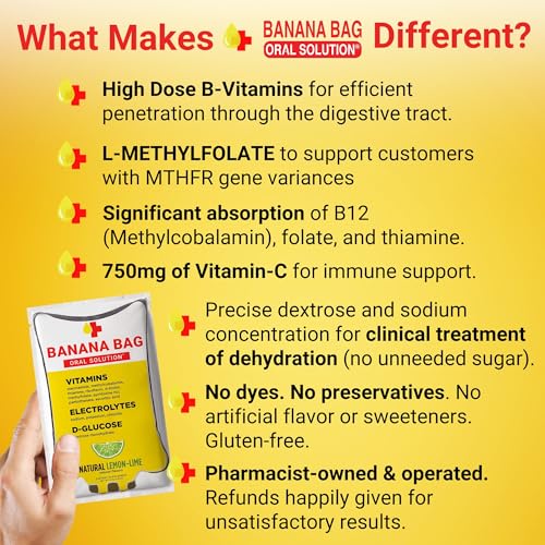 ⚡[𝗘𝗫𝗣𝗘𝗥𝗧𝗟𝗬 𝗖𝗥𝗔𝗙𝗧𝗘𝗗 𝗙𝗢𝗥𝗠𝗨𝗟𝗔] Blend of B12, Potassium, Thiamine, Folate, Pyridoxine, and Electrolytes. Banana Bag Hydration Packets Provide a Convenient Way to Replenish Essential Nutrients and Support Your Daily Routine.
