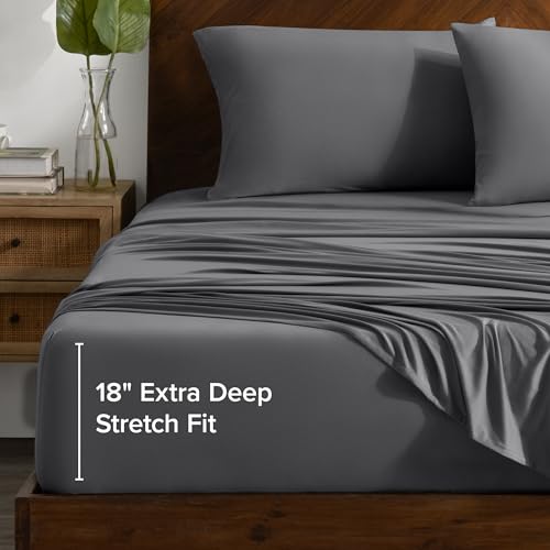 Specification: Bare Home Cooling Performance Jersey Knit Stretch Sheet Set, Moisture-Wicking & Breathable, 4-Way Stretch Bed Sheets, Envelope Pillowcases (Queen, Grey)
