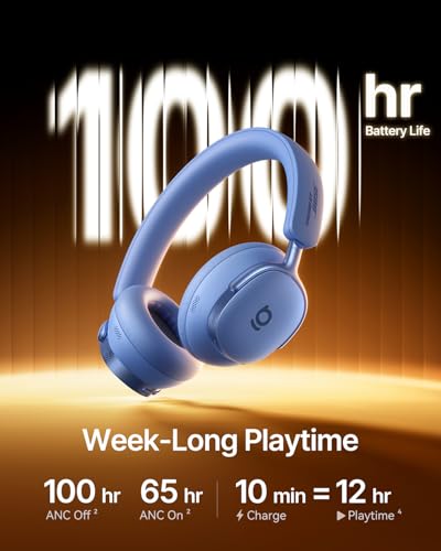 Week-Long Playtime: Enjoy up to 100 hours of nonstop playtime (ANC off) or 65 hours (ANC on). A 10-minute fast charge delivers 12 more hours. These headphones wireless with long battery life are built for week-long listening—ideal for airplane traveling or daily use.