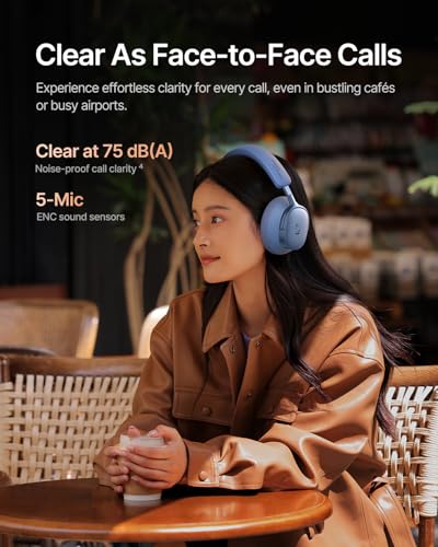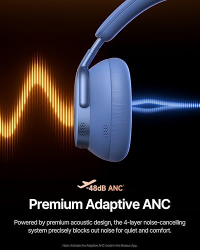 Premium Adaptive ANC: Block out distractions with precision. The advanced 4-layer hybrid ANC system analyzes your surroundings 38,400 times per second to reduce noise by up to -48 dB. from plane engines to crying babies.Ideal noise-cancelling headphones for flights, commutes, or deep focus sessions.