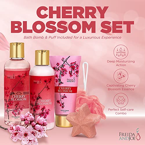 Specification: Bath and Body Gift Basket For Women – 5 Piece Set of Cherry Blossom Bath & Body Collection Gift Box, Includes Shower Gel, Body Lotion, Body Scrub, Bath Bomb & Sponge – Appreciation Gift Ideas