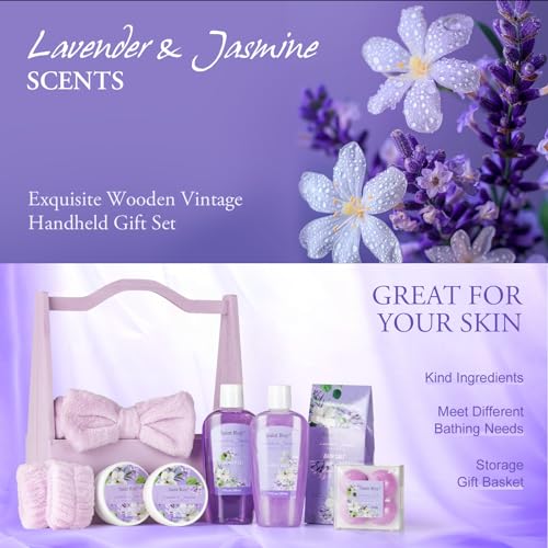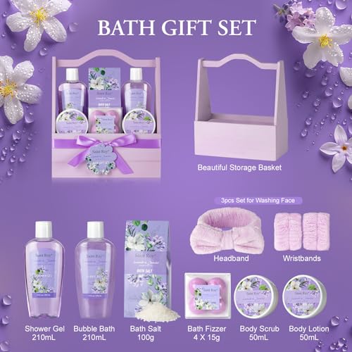 Bath and Body Gift Basket Set for Women – Jasmine Christmas Gifts for Women, Spa Gift Basket 13-Piece Bath Gift Set, Gift Set for Ladies Body & Bath Gifts Set Lavender Gift Baskets For Mom