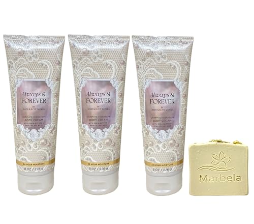 Bath & Body Works Always & Forever 2 Pack Body Cream Bundle with a 4 oz Marbela Wild Jasmine Bar Soap (Soap May Vary).