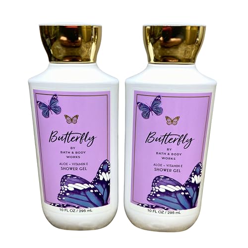 Bath & Body Works Butterfly Body Wash Gel, Pack of Two. What it does: leaves your skin feeling fresh, clean and beautifully fragranced. Why you’ll love it: Infused with the good stuff (Pro Vitamin B5 and aloe) Light, bubbly lather Gentle cleanser (a.k.a. daily indulgence) Non-drying and dermatologist tested. 10 Oz. each bottle. (Bottle Artwork May Vary as Seasonally Refreshed by Manufacturer).