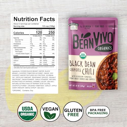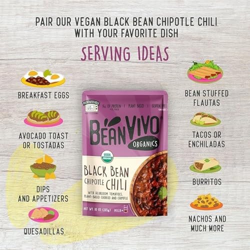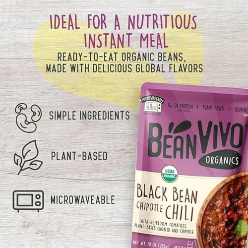 Specification: BeanVIVO (Pack of 6) Organics Plant based Black Beans Chipotle Chili – Good Source of Fiber – Nutritious & Microwave Meals – Gluten-Free Plant Food – 10 oz