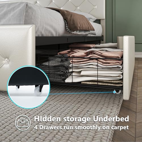 [Huge Storage Space]: With four storage drawers, this bed frame provides ample hidden storage. The smooth sliding rails reveal four drawers that can hold at least 80 pieces of clothing, helping your bedroom stay clutter-free. Whether storing daily necessities or precious memories, everything will be neatly organized.