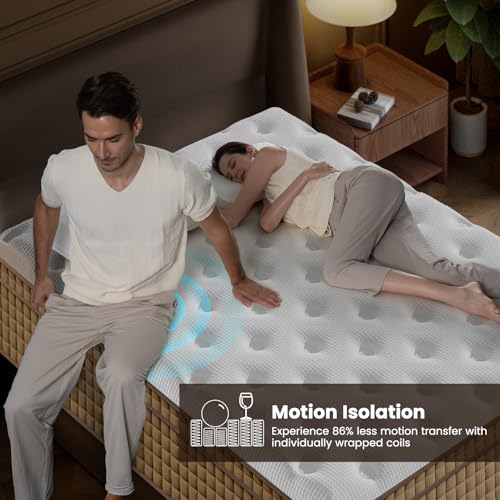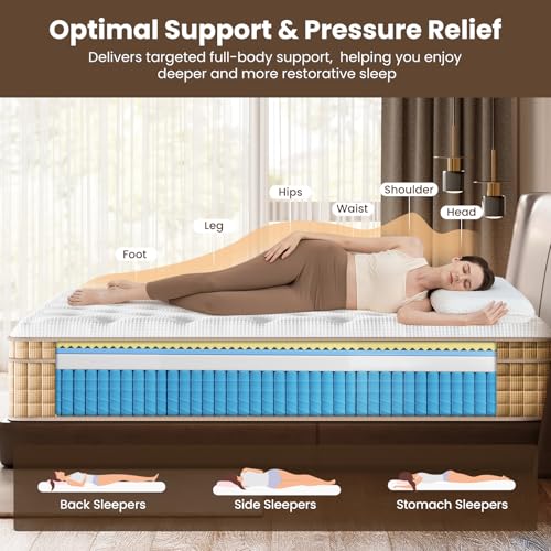 Balance Support & Pressure Relief:The hybrid mattress queen size construction combines the support of pocket springs with the comfort feel of premium foam layers, aintain natural spine curvature, and alleviate pressure for optimal sleep posture. Meanwhile, spring gaps facilitate air circulation, reducing heat build-up and ensuring a cool surface for enhanced comfort during sleep