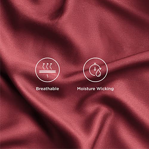Bedsure California King Sheet Sets, Cooling Sheets, Rayon Derived from Bamboo, Breathable & Soft, Deep Pocket Up to 16 Inches, Hotel Luxury Silky Bedding for Hot Sleepers, Burgundy